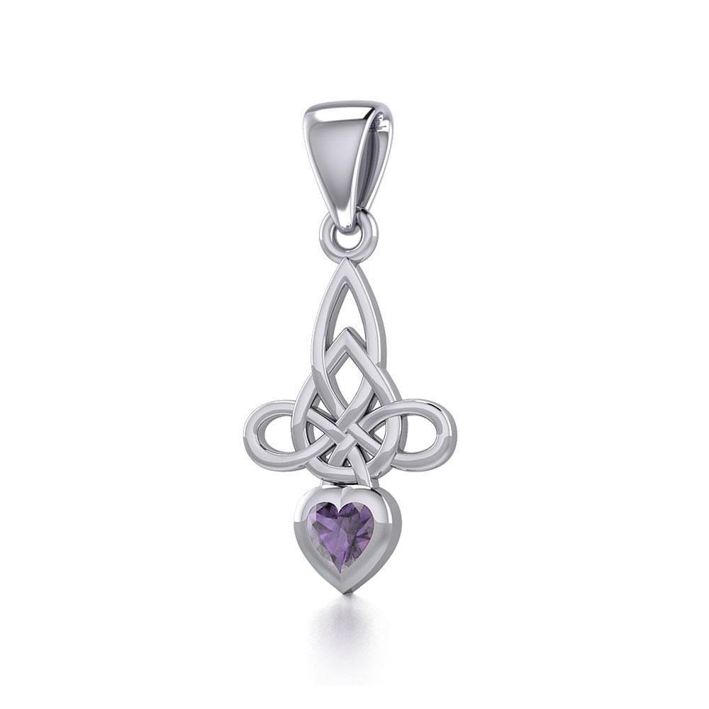 Celtic Knotwork is an ancient design that symbolizes eternity… the eternity of life, nature, and love. Incorporated into Celtic art for millennia, the Celtic Knot has become distinctly recognizable for its interconnectedness and appears in myriad forms and designs, each one more compelling than the last. These tastefully simple Celtic Witches Knot Silver Pendant with Heart Gemstone designed by Peter Stone are a great way to honor the ancient Celtic traditions by acknowledging the power of the eternal.