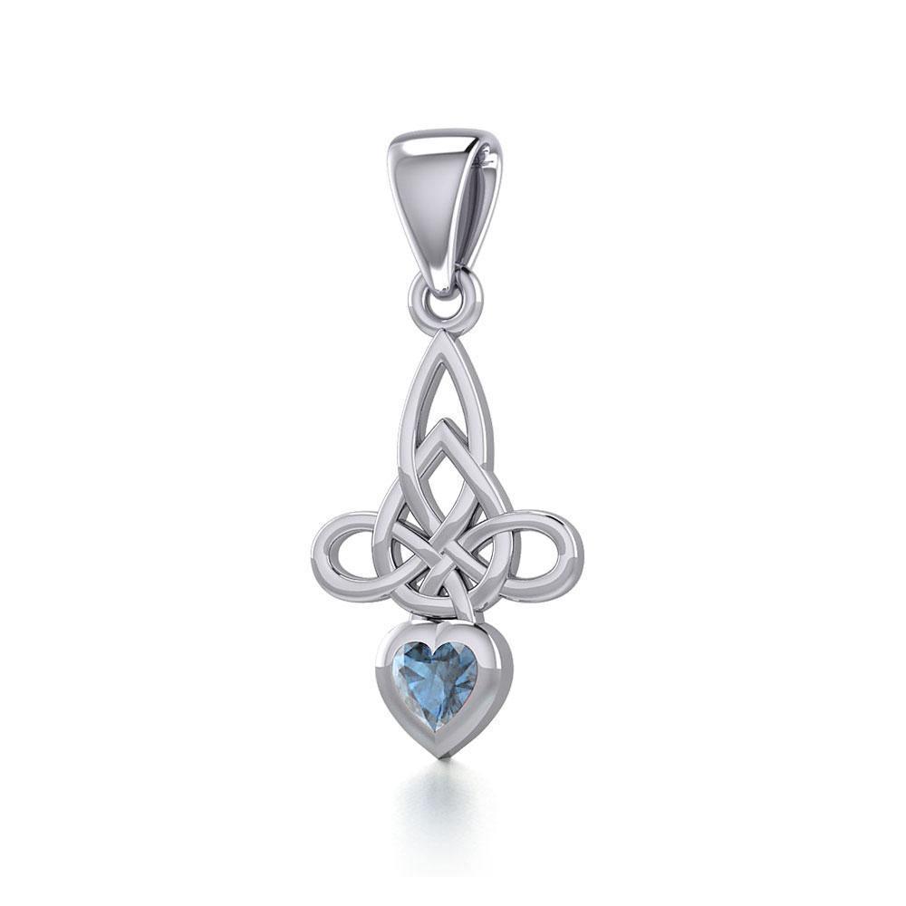 Celtic Witches Knot Silver Pendant with Heart Gemstone TPD5334