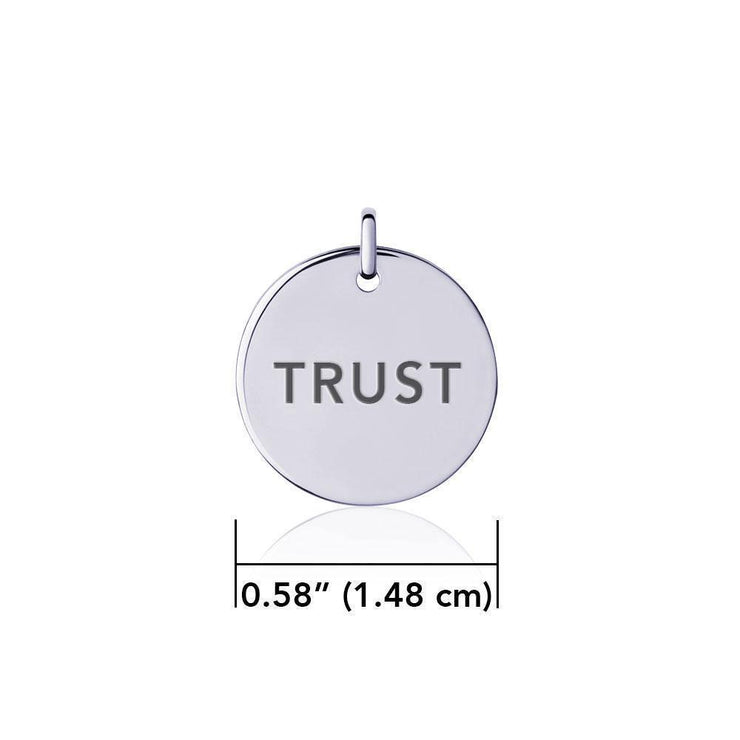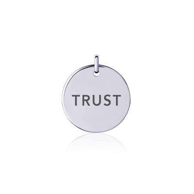 Meticulously crafted from fine sterling silver, the Power Word Trust Silver Disc Charm features a detailed inscription and hand crafted quality from the world class artisans at Peter Stone.