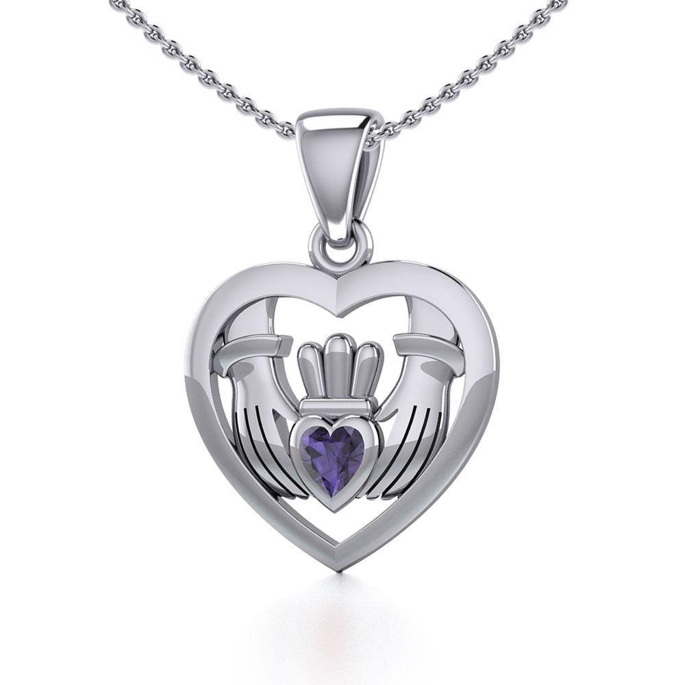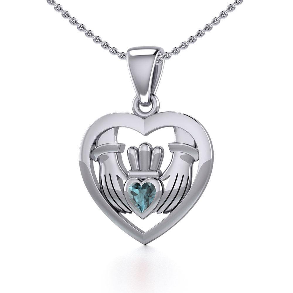 Claddagh in Heart Silver Pendant with Gemstone TPD5330