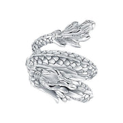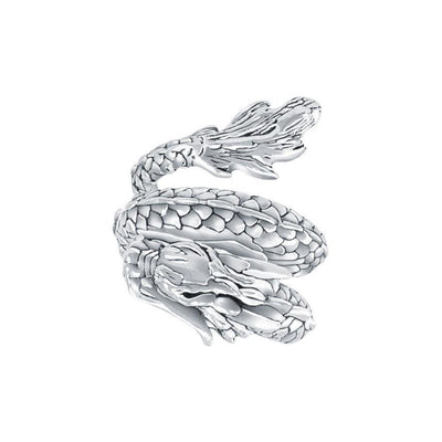 Intricately crafted from fine sterling silver, the Coiled Eastern Dragon Ring features a detailed inscription and hand-crafted quality from the world class artisans at Peter Stone. Peter Stone – the world's leading manufacturer of fine sterling silver jewelry – has created the Power Word Collection with inspiring mantras to help you find your inner peace or make an affirming statement.
