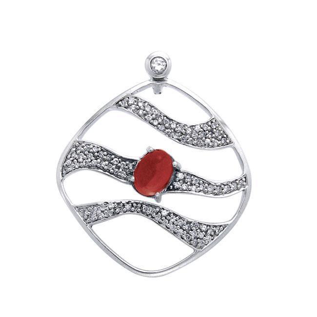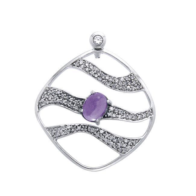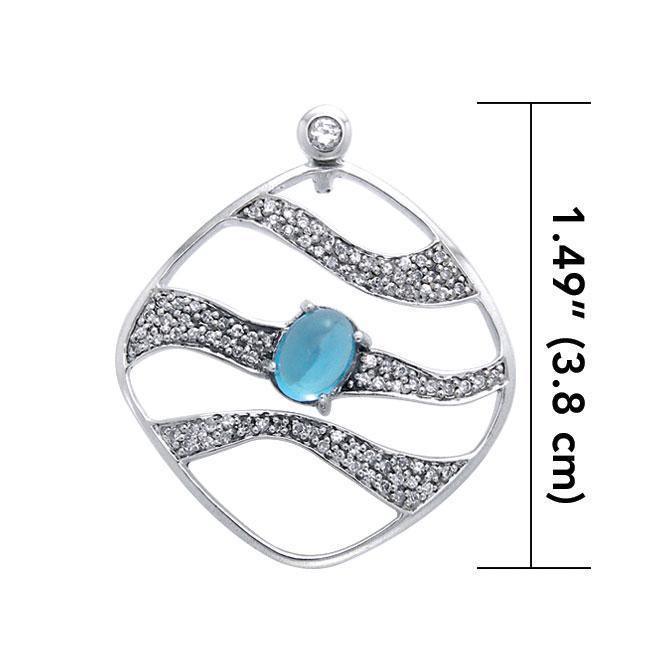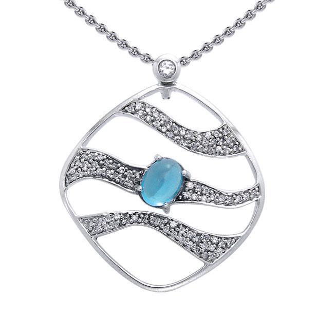 Contemporary Silver Pendant with Wave Motif Gemstone TPD3493