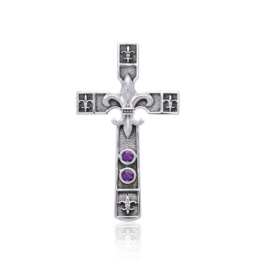 Enlightened by the symbolism of Fleur-de-Lis in the sacred cross ~ Sterling Silver Jewelry Pendant TPD356