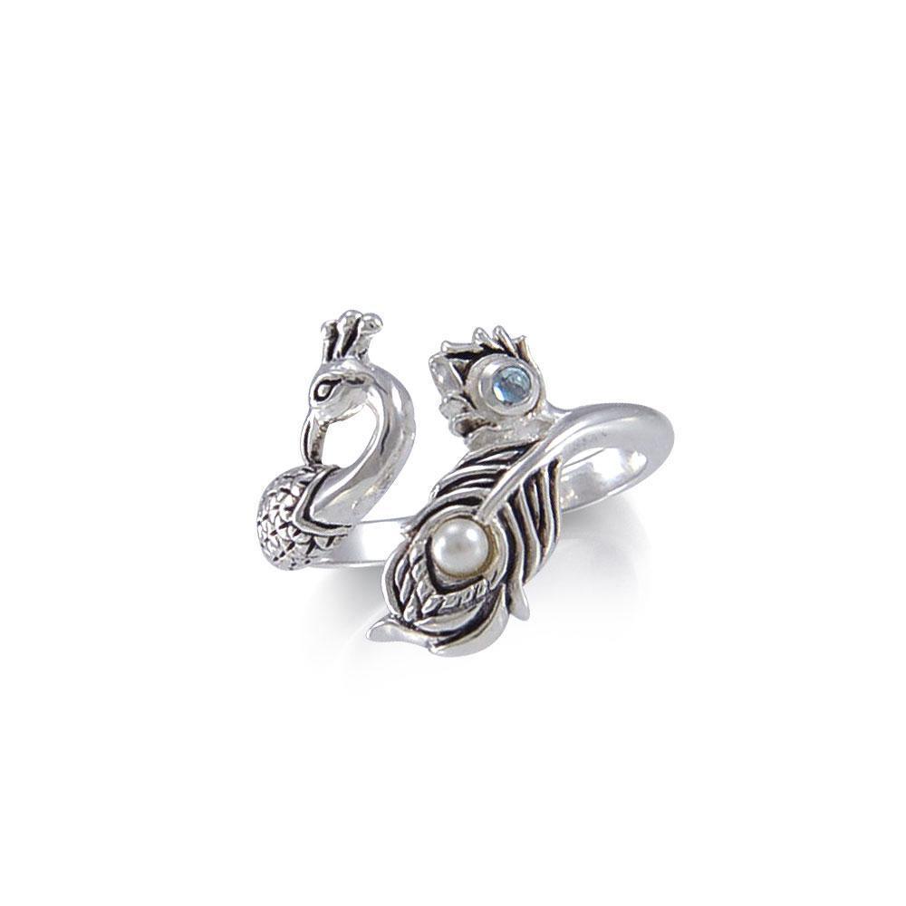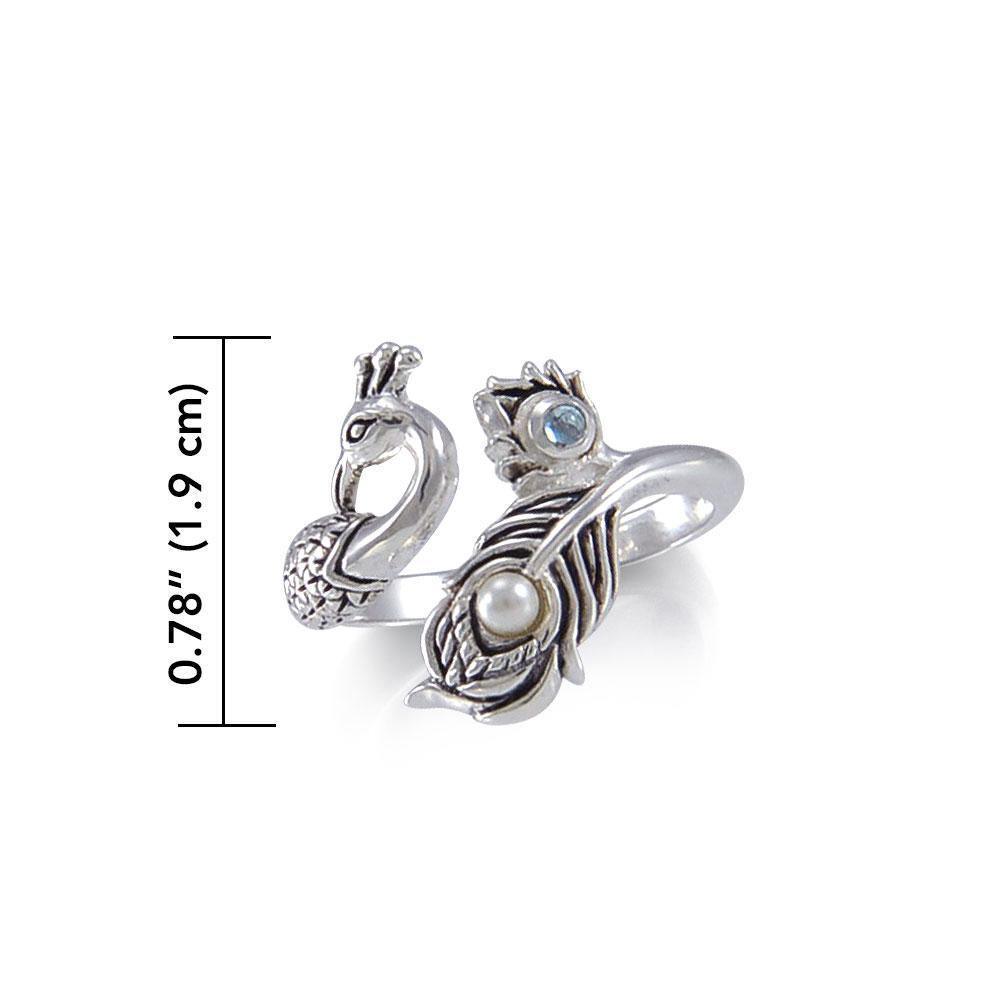 Dancing Peacock Ring in glimmering Silver Ring with Gemstone TRI1814