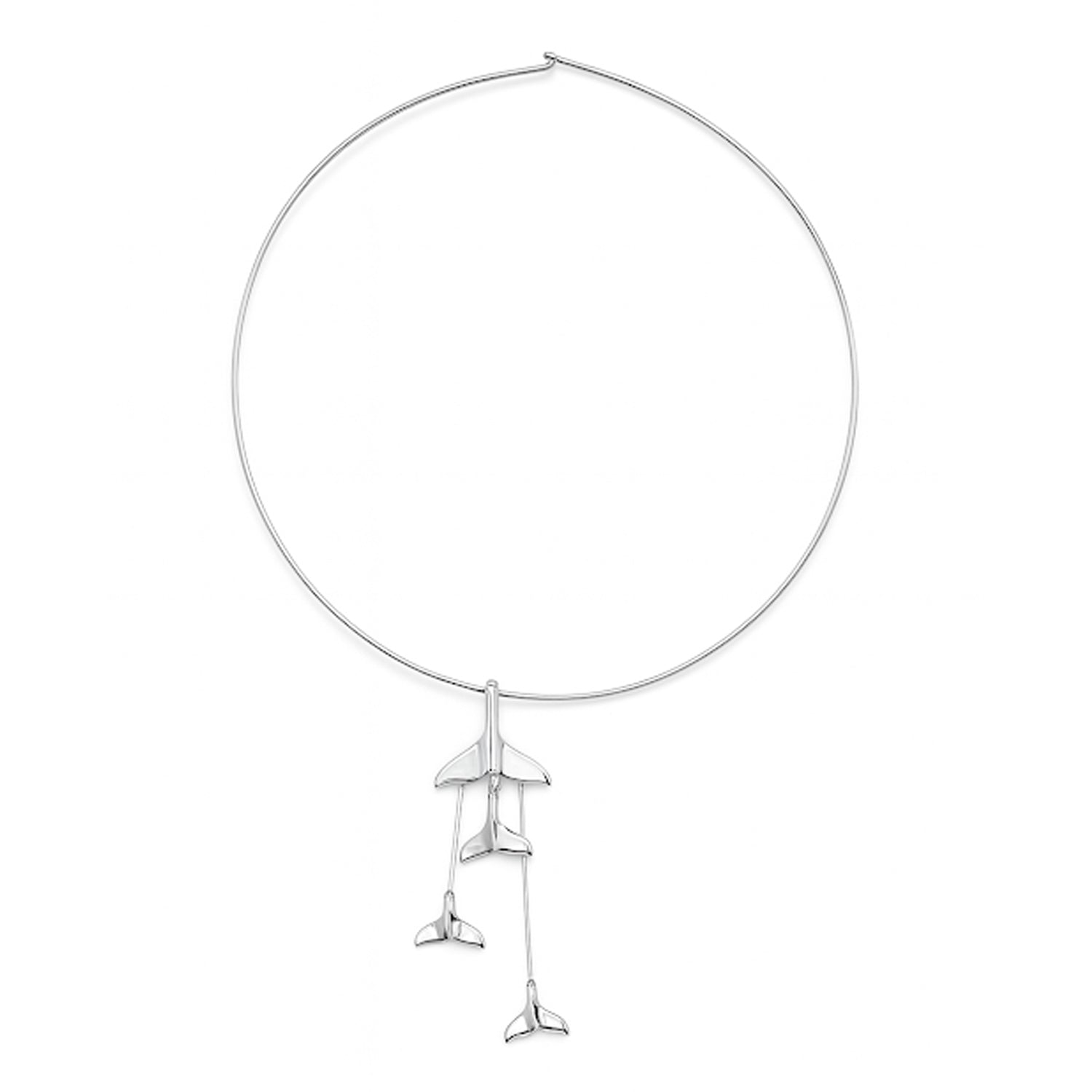 Meticulously crafted from fine sterling silver, the Dangling Silver Whale Tails Fashion Necklace captures the spirit of the whales and is the perfect piece of jewelry for anyone who loves whales or the sea.