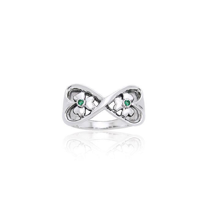Capture the luck of the Irish with this beautiful ring featuring a pair of shamrocks accented with emerald colored gems.