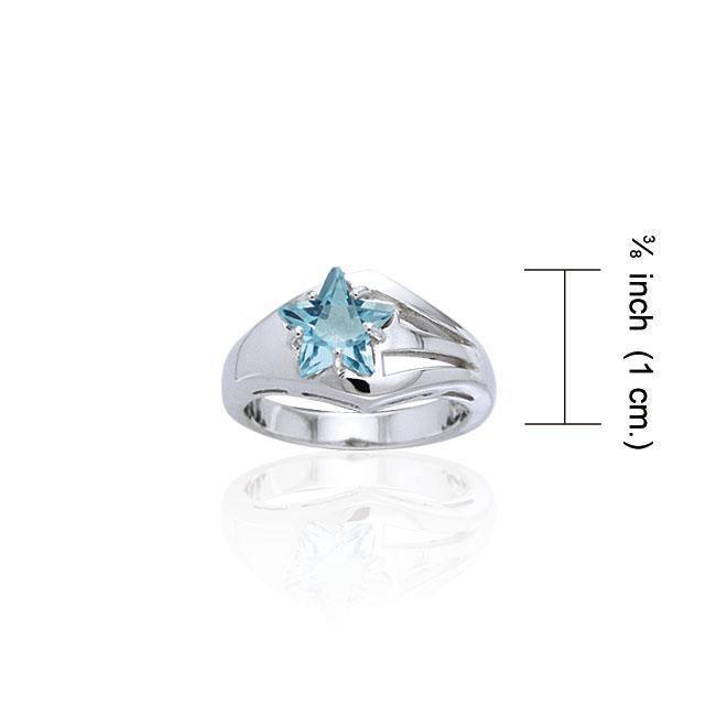 An Azure Cubic Zirconia is held within an intricately twisted sterling silver band creating and artistic masterpiece that shines with the brilliance of diamonds.