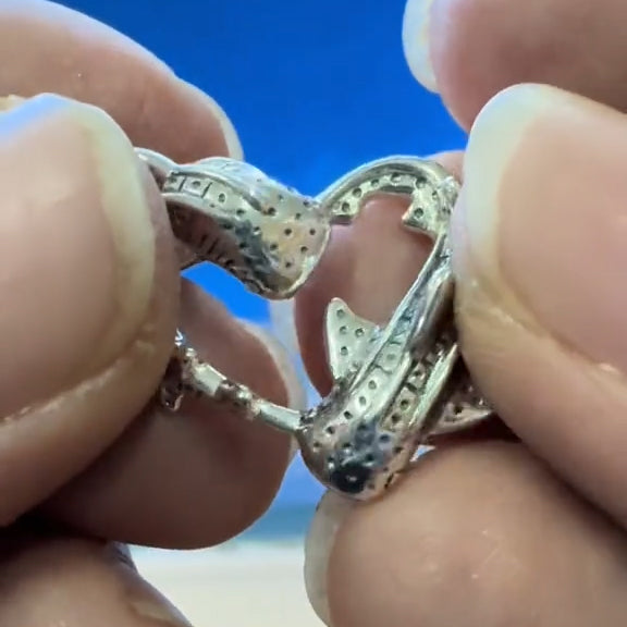 DiveSilver Double Whale Shark Heart Sterling Silver Slider Pendant TPD6308