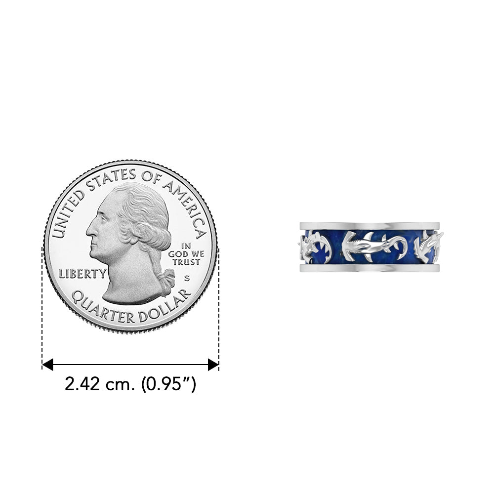 DiveSilver Hammerhead Shark Enamel Silver Band Ring TRI2536