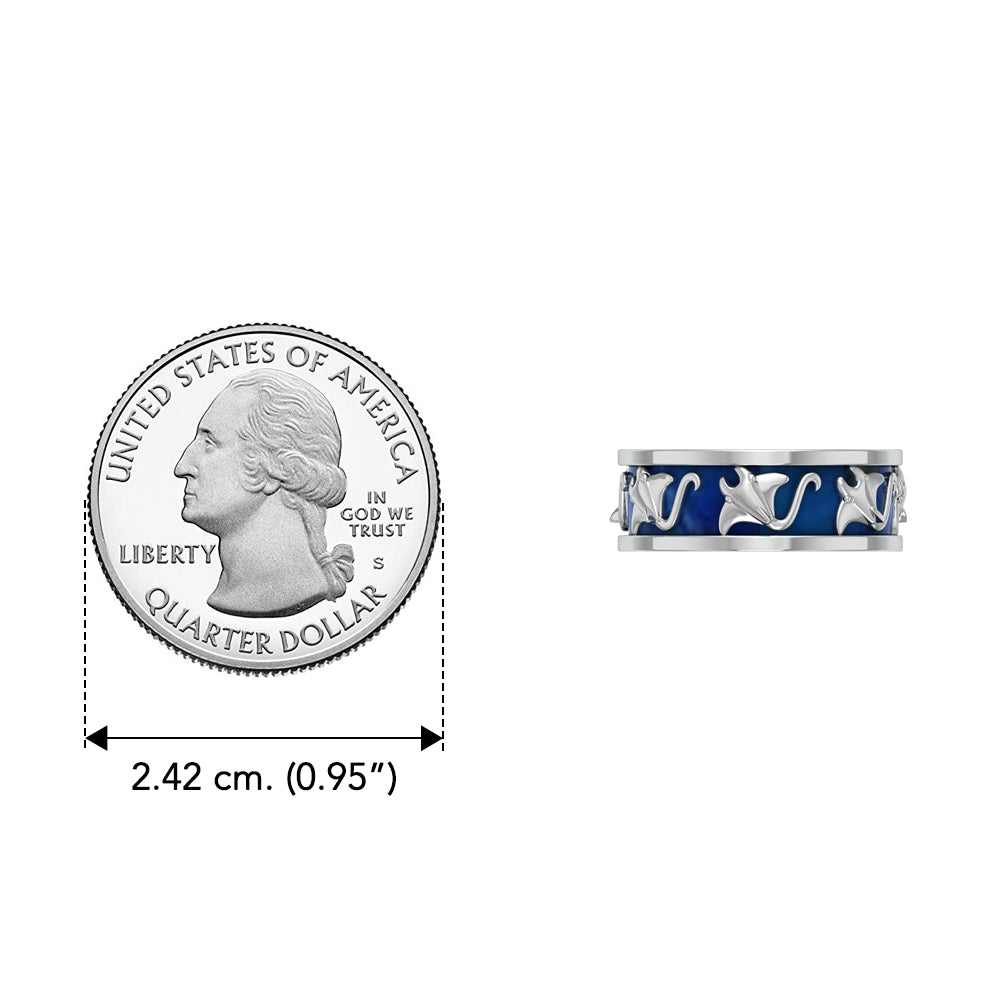 DiveSilver Manta Ray Enamel Silver Band Ring TRI2533