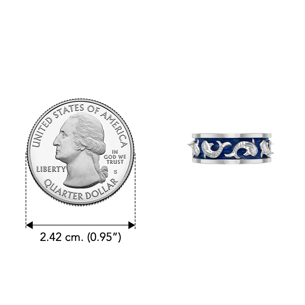 This DiveSilver Whale Shark Enamel Silver Band Ring is expertly crafted with sterling silver and features a stunning enamel design of a majestic whale shark. Showcasing the beauty of this ocean creature, this ring is perfect for any lover of marine life.
