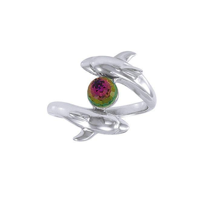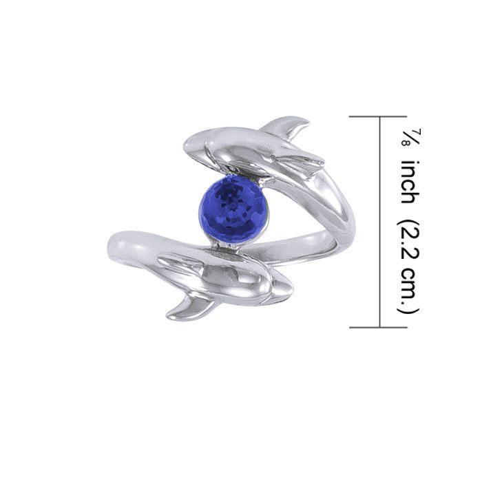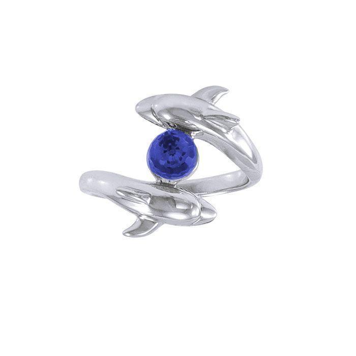Dolphin and Gemstone Sterling Silver Ring WR201