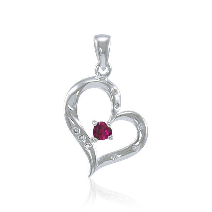 Elegant Heart Sterling Silver Pendant with Genius Garnet and CZ TPD2962
