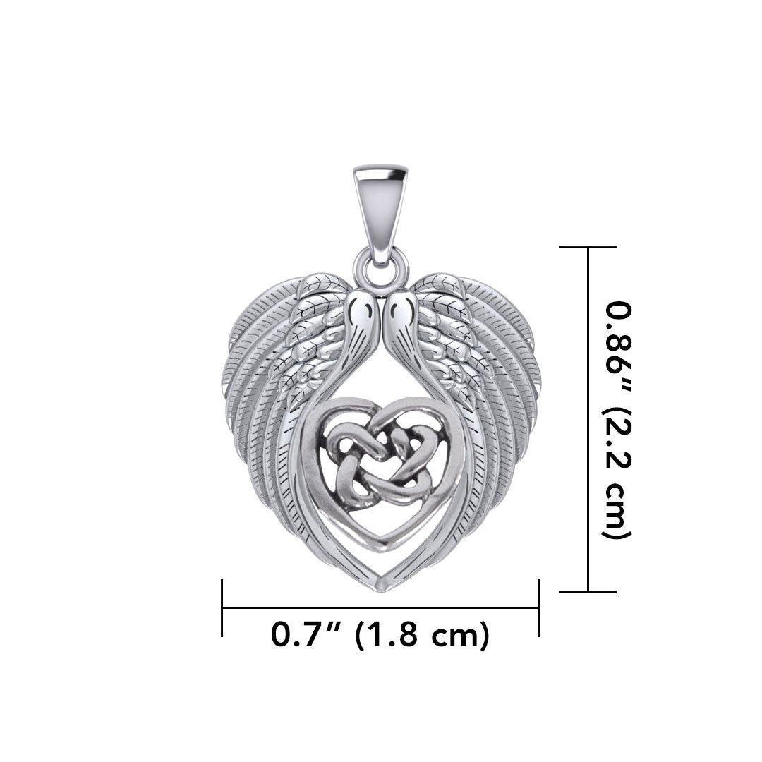 Feel the Tranquil in Angels Wings Silver Pendant with Celtic Heart TPD5458