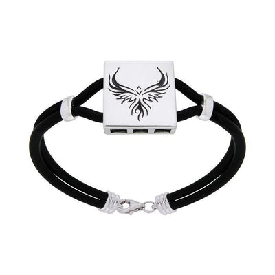 Sterling Silver Fiery Phoenix Leather Cord Bracelet TBL195
