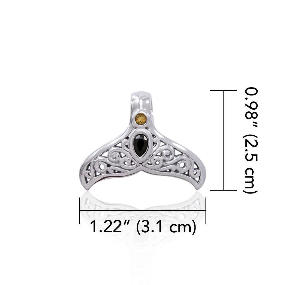 Filigree Whale Tail ~ Sterling Silver Jewelry Pendant with Gemstone TPD3798