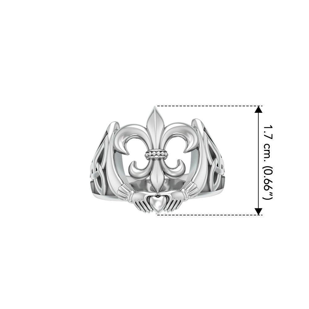 A powerful combination of Celtic elements ~ Fleur-de-Lis and Claddagh Sterling Silver Ring TRI172