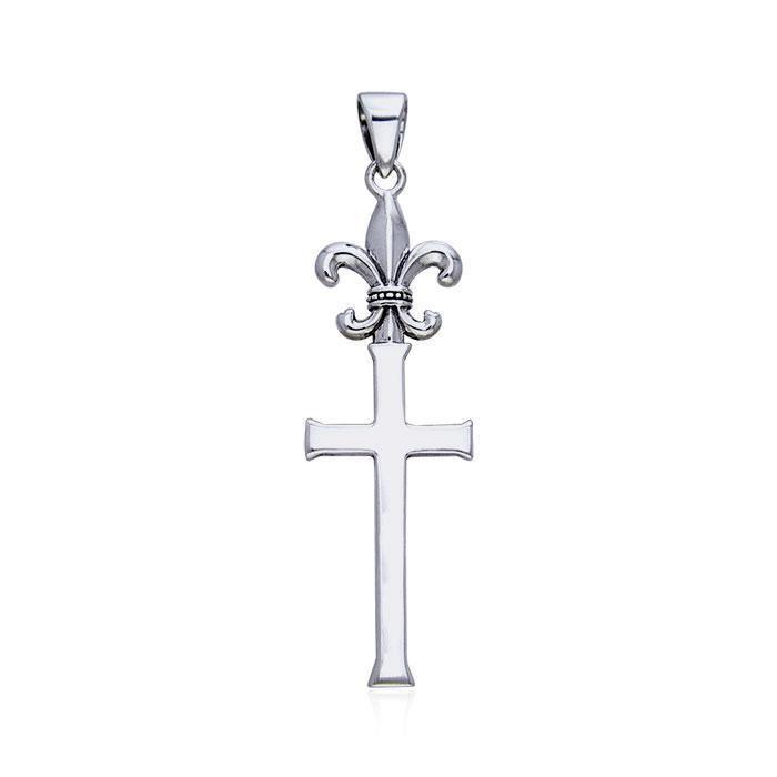 Meticulously crafted from fine sterling silver, the Fleur De Lis with Cross Silver Pendant displays the fine craftsmanship of Peter Stone Artisans.