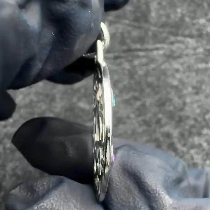 This exquisite Flower of Life with AA Symbol Sterling Silver Pendant is a meaningful blend of spirituality and recovery. The Flower of Life pattern, a sacred geometric design symbolizing creation and interconnectedness, is delicately crafted in sterling silver and adorned with brilliant blue gemstones, representing clarity and serenity.