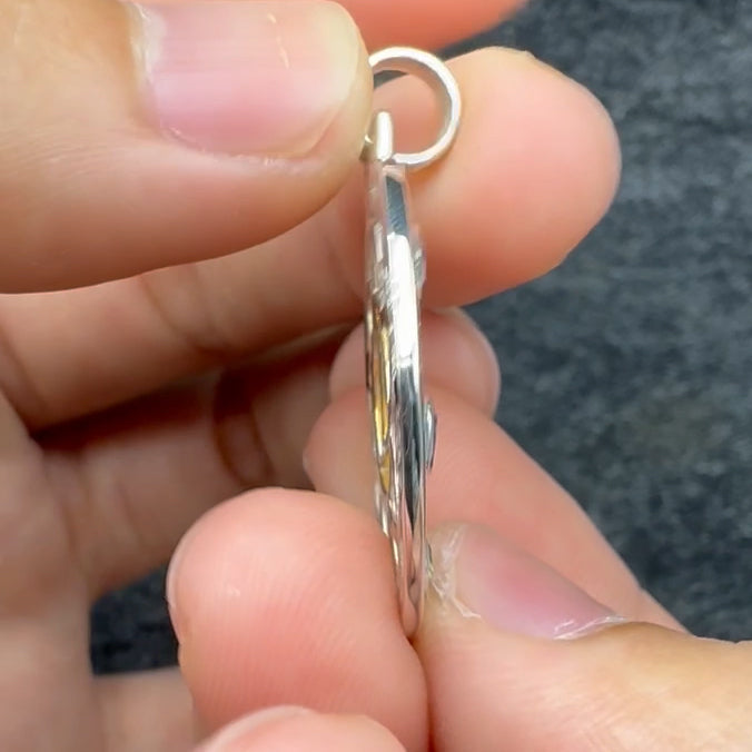 At the heart of the pendant lies the Alcoholics Anonymous (AA) symbol, a 14K gold vermeil triangle within a circle, symbolizing unity, recovery, and service. The contrast between the polished sterling silver and the warm gold vermeil enhances the pendant’s elegance, making it both a powerful token of strength and a stylish accessory.