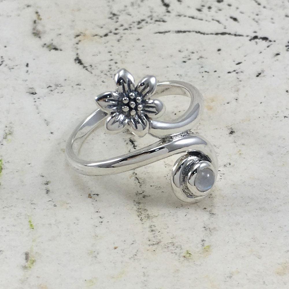 Meticulously crafted from fine sterling silver, the Flower with Gemstone Silver Ring is the perfect way to add some beauty and comfort to your day.