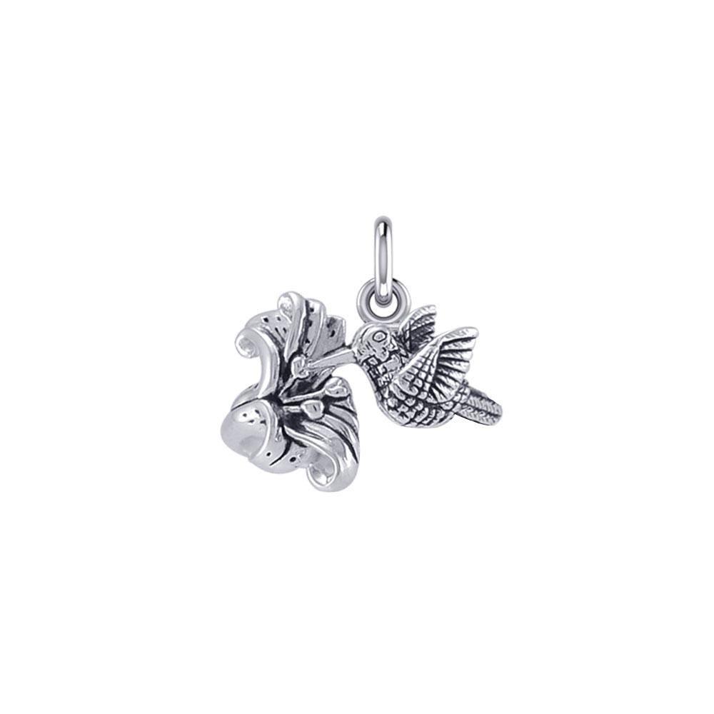 Flying Hummingbird with Flower Silver Charm TCM631