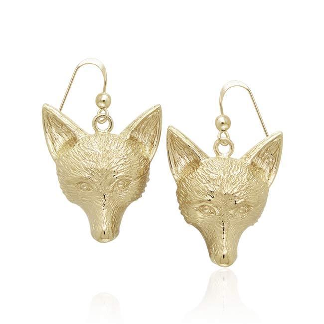 Fox Large Hook Earrings VER934 large handcrafted 14 kt. gold accent sterling silver fox hook/dangle earrings