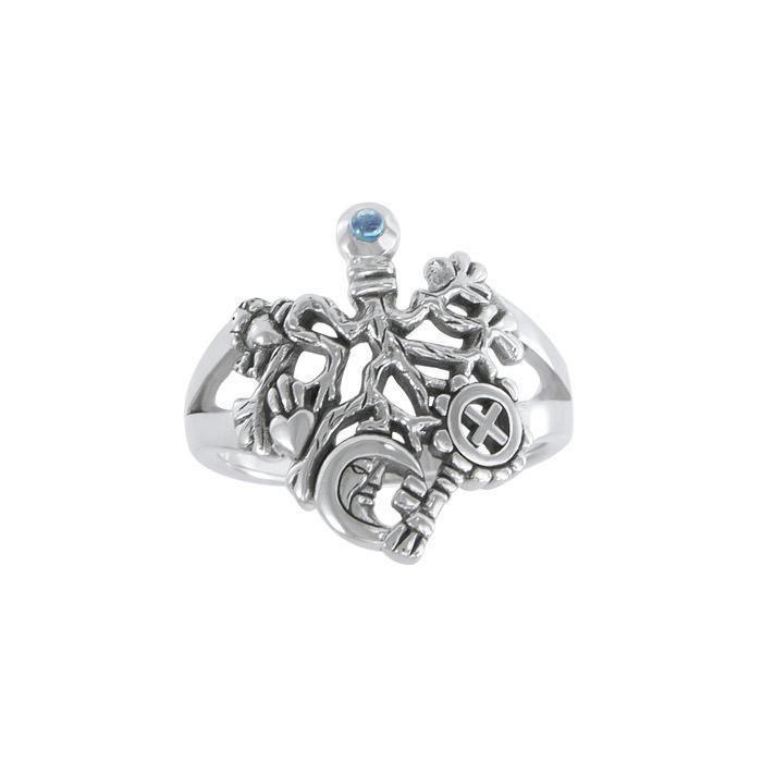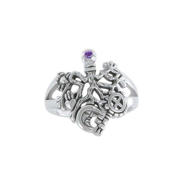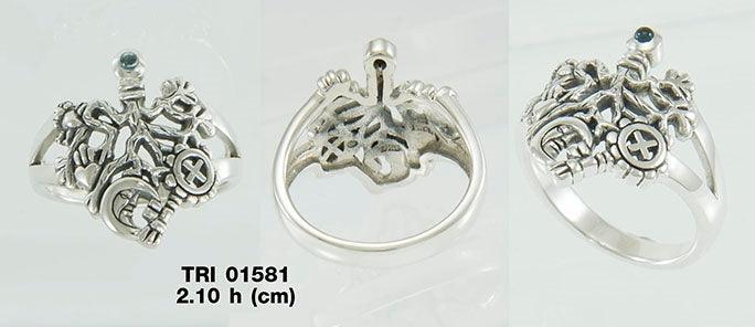 Timeless protection of the Cimaruta Witch ~ Sterling Silver Ring with Gemstone TRI1581