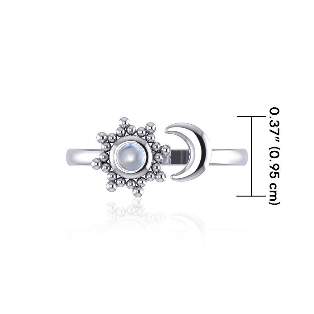 Celebrate the soothing influence of the flower with the Gemstone Flower with Crescent Moon Silver Ring.