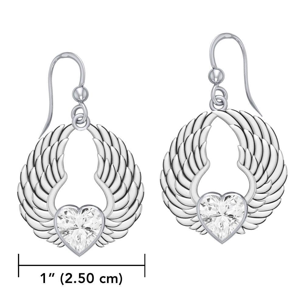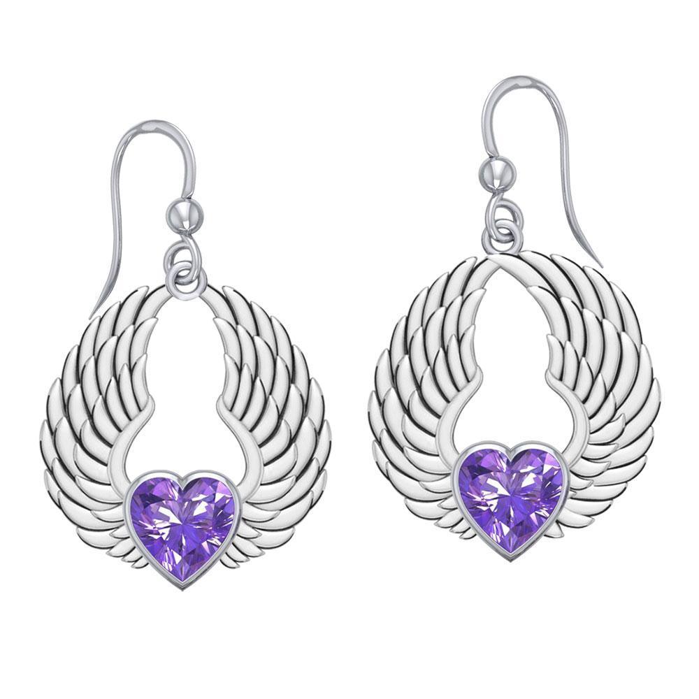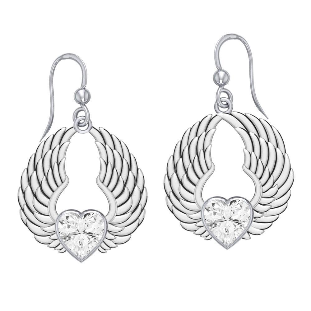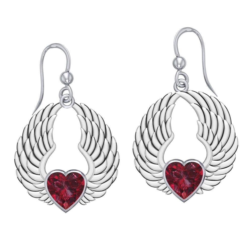 Gemstone Heart and Angel Wings Silver Earrings TER1742