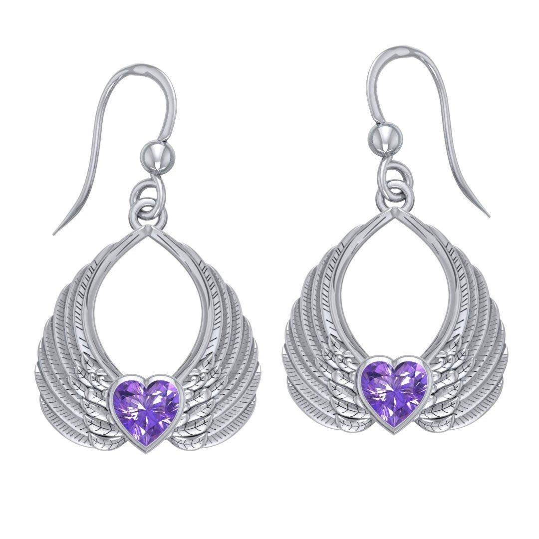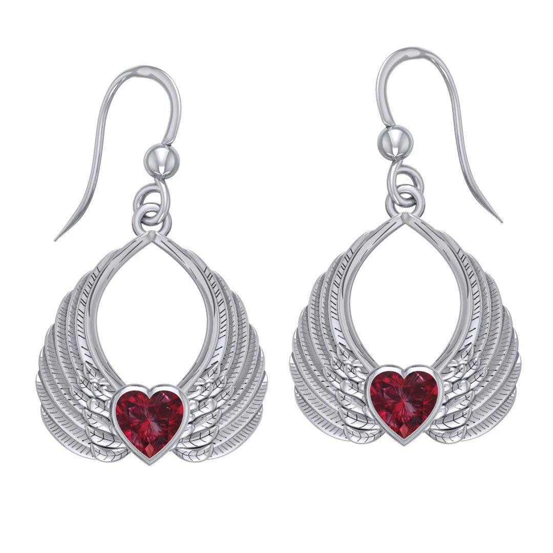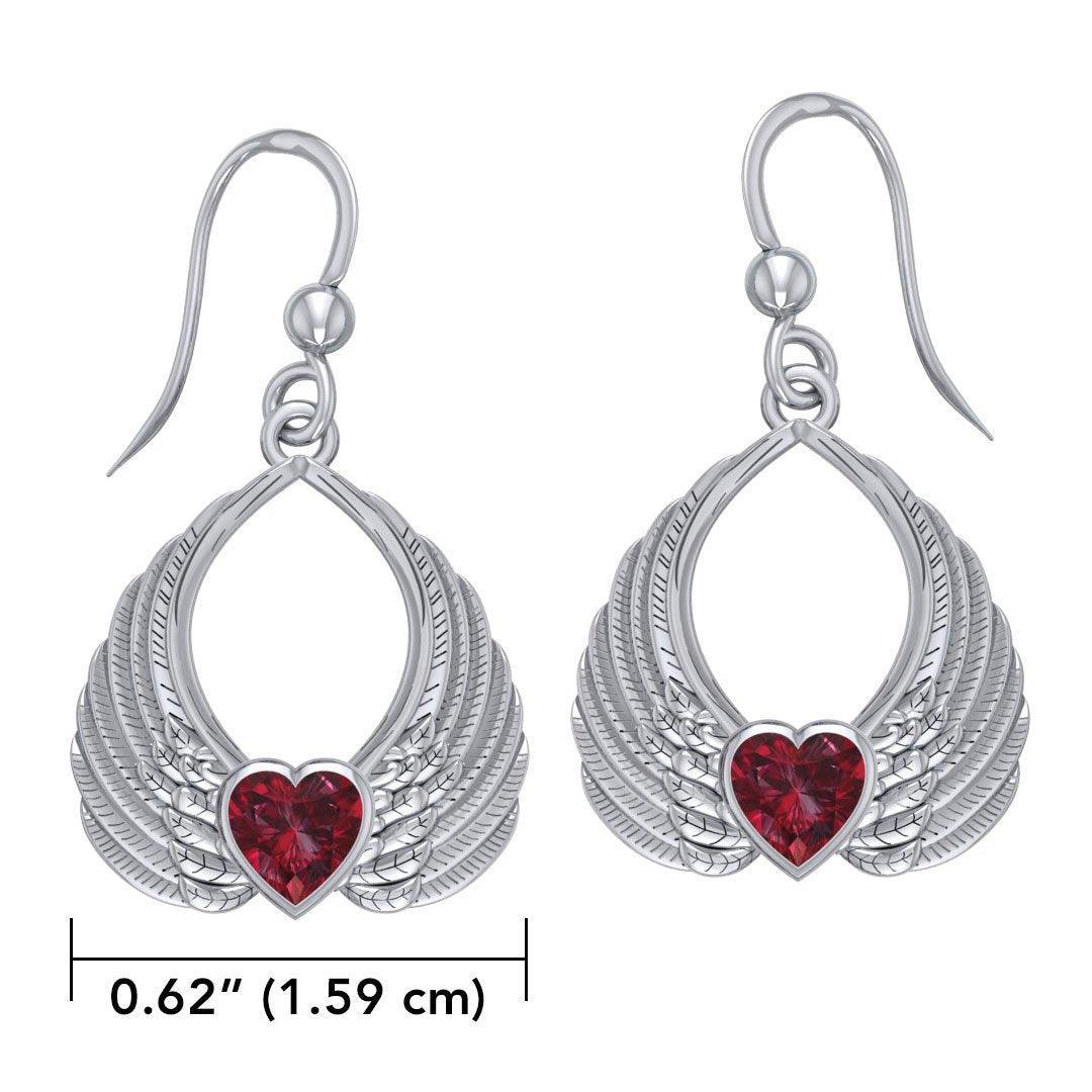 Gemstone Heart Angel Wings Silver Earrings TER1723