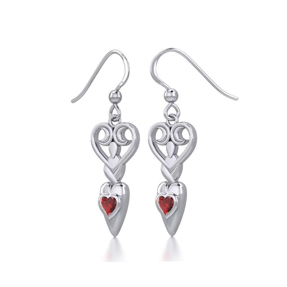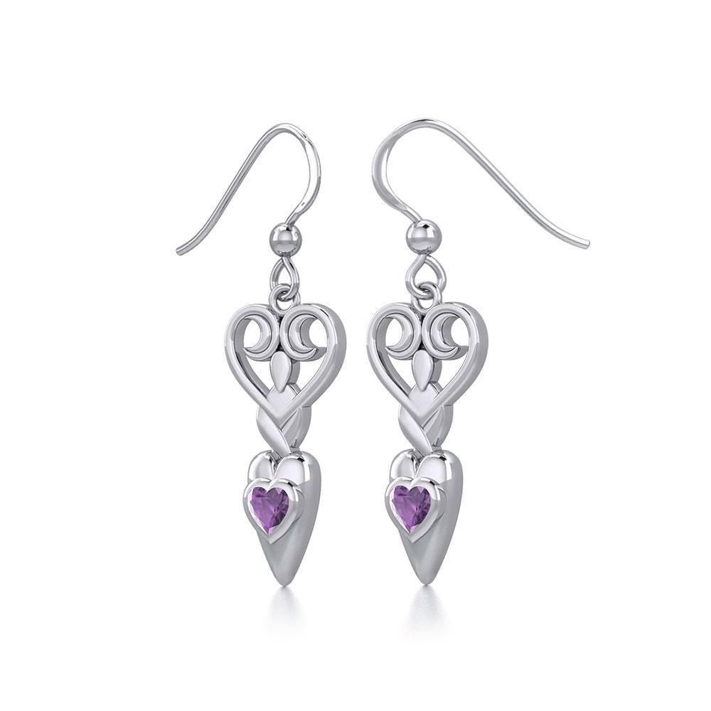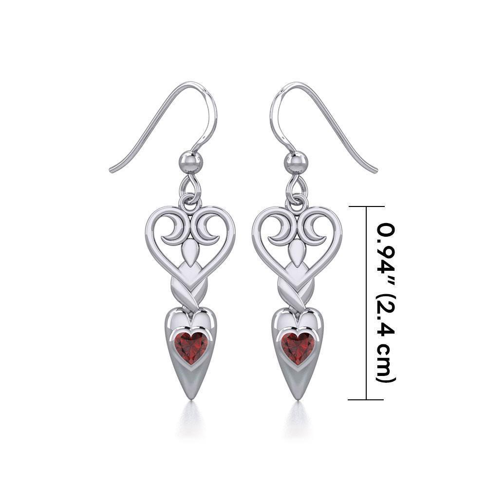 Meticulously crafted from fine sterling silver with genuine gemstone, the Goddess with Heart Gemstone Silver Earrings will inspire you with her everflowing stream of celestial grace.