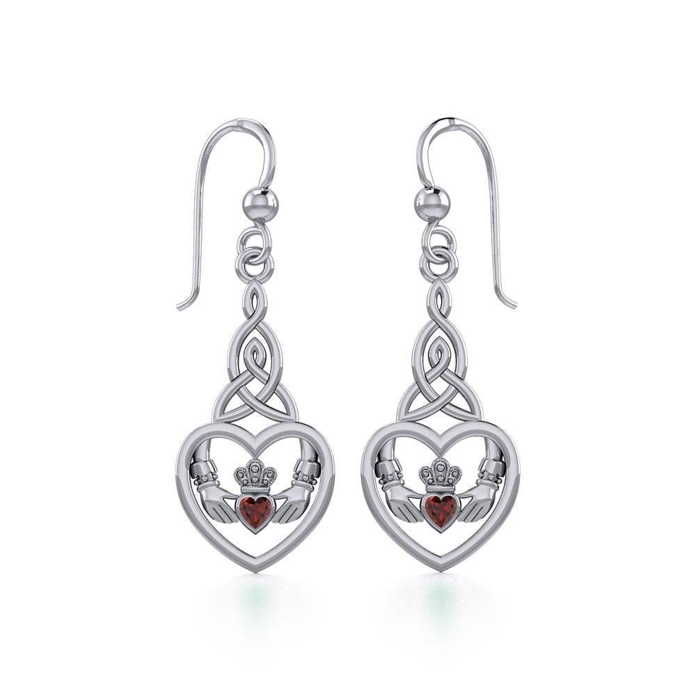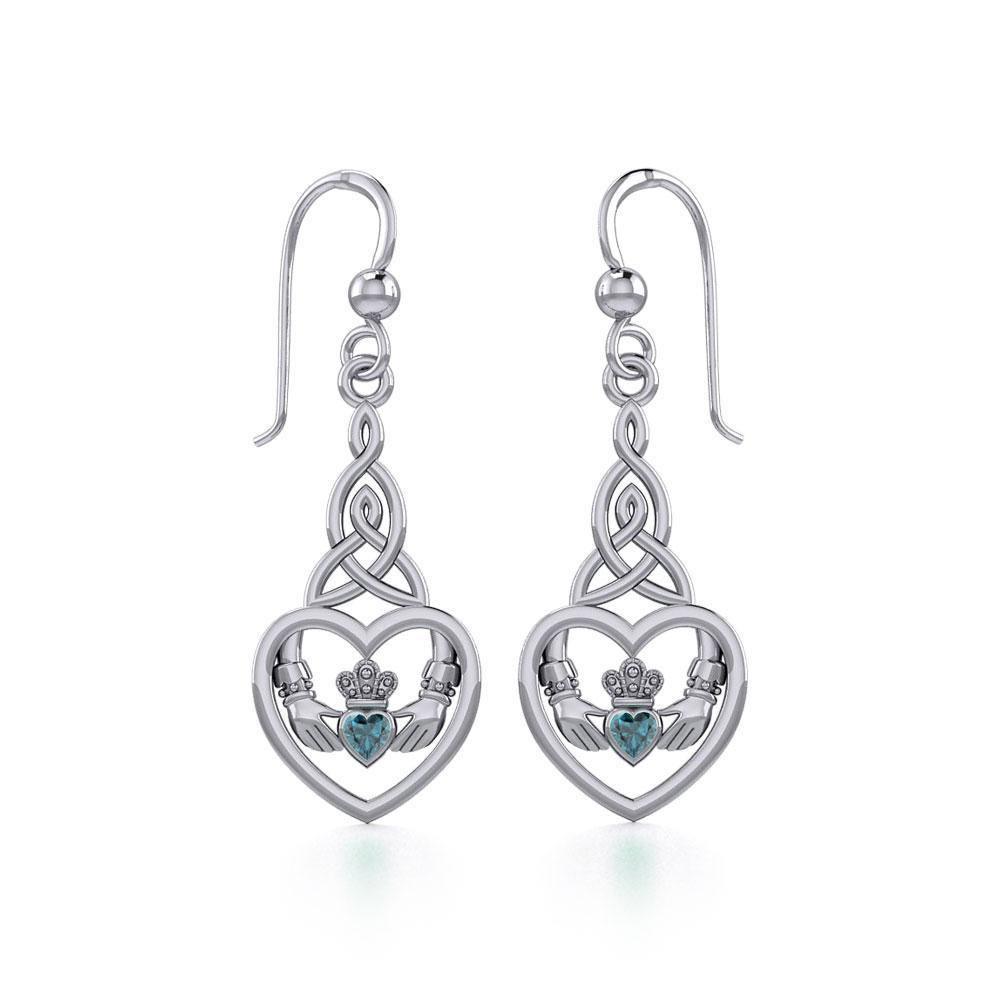 Meticulously crafted from fine sterling silver, the Heart Claddagh with Celtic Trinity Knot Silver Earrings with Gemstone showcases the beauty of Celtic tradition and the fine craftsmanship of Peter Stone Artisans.