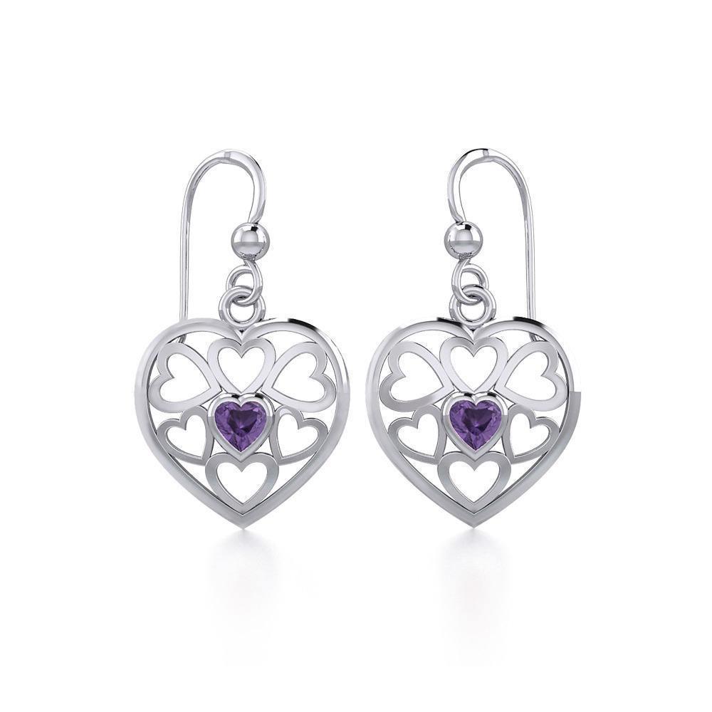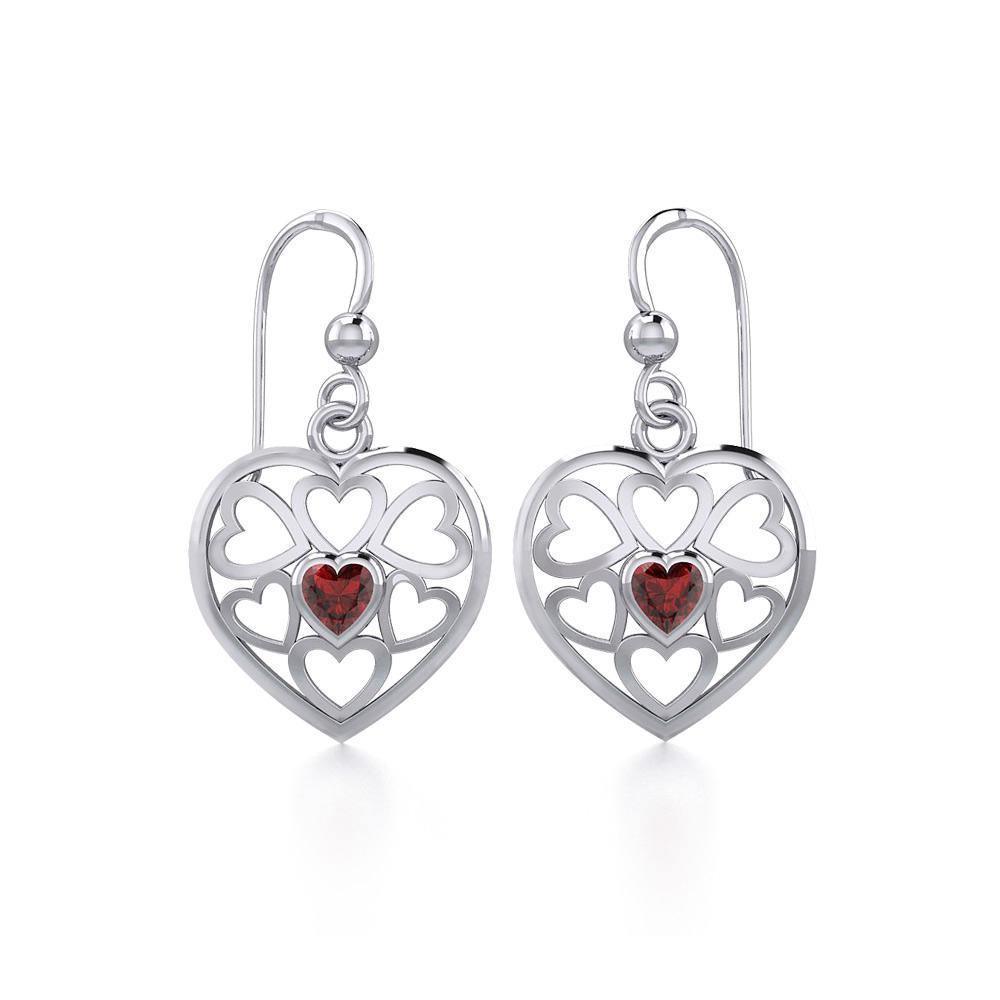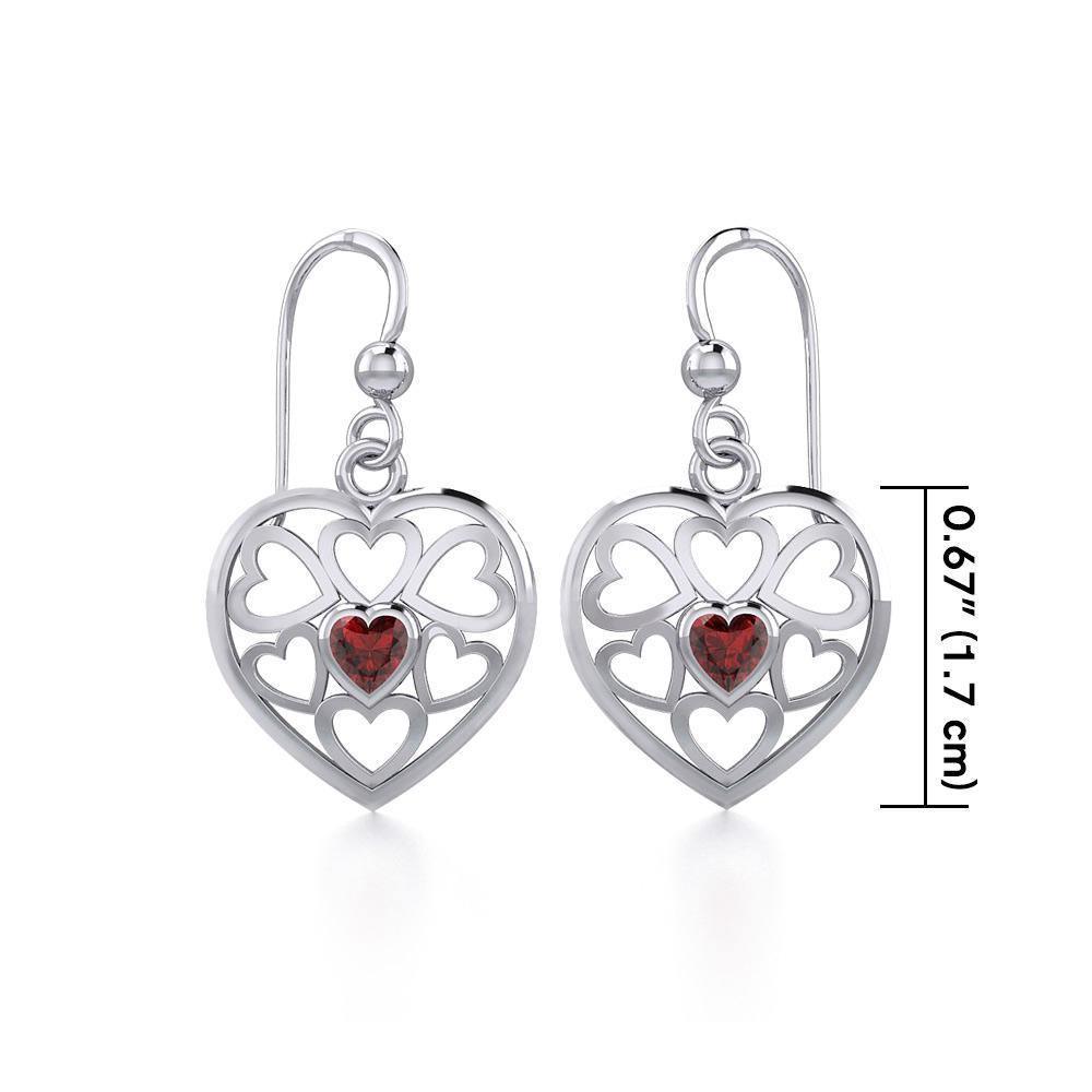 Hearts in Heart Sterling Silver Earrings with Gemstone TER1792