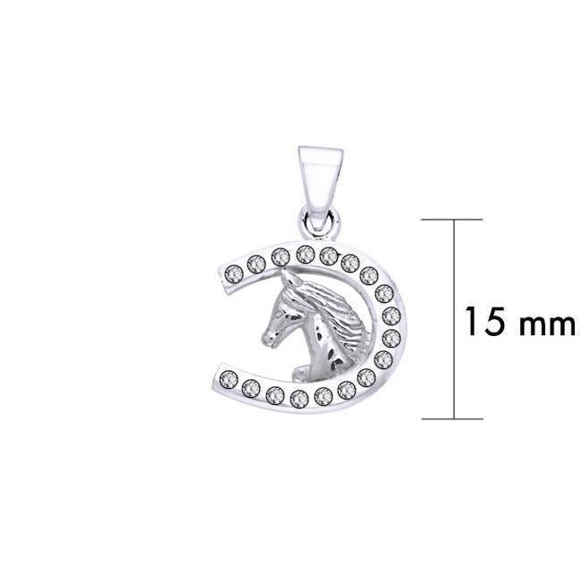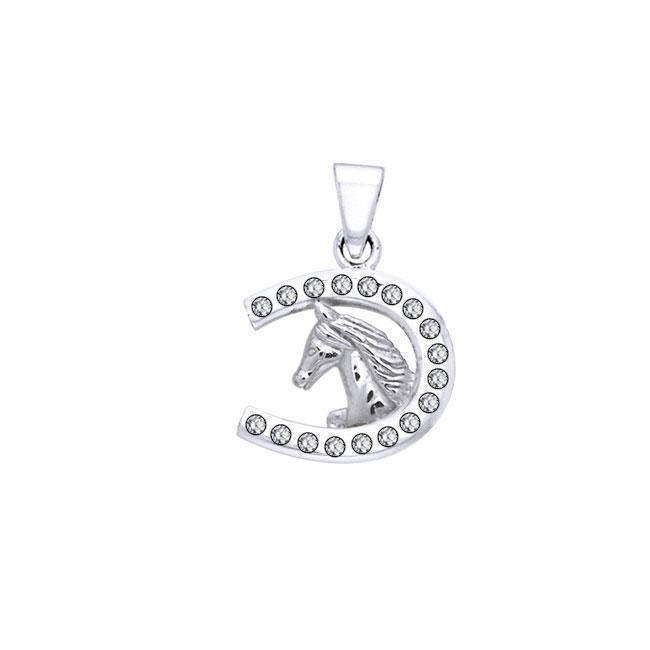 Horseshoe and Horse with Gems Silver Pendant TPD5760