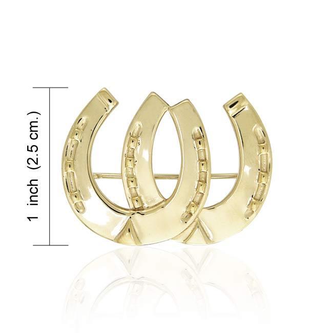 Elegantly display your equestrian love with this glimmering 14k gold twin horseshoes brooch.