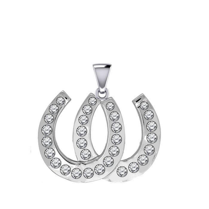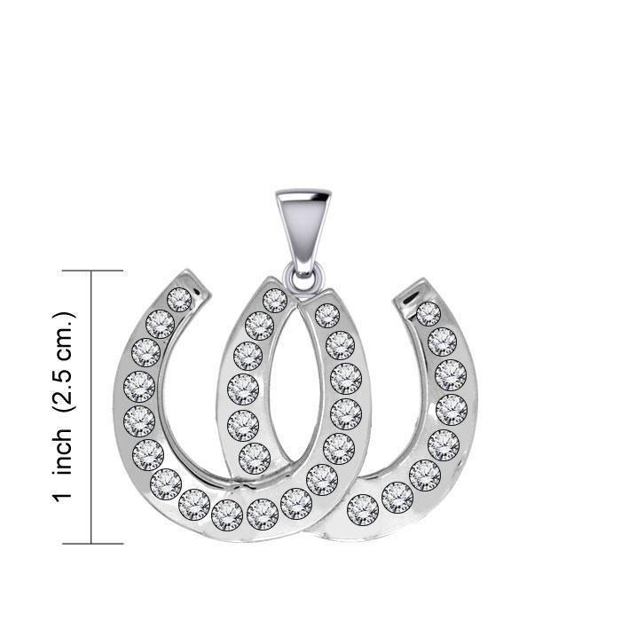 Elegantly display your equestrian love with this glimmering White Cubic Zirconia on Silver twin horseshoes Pendant.