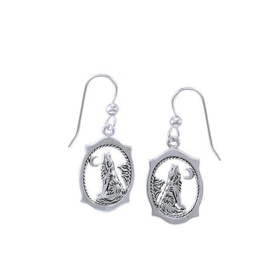 Listen to the wolf’s mighty howl ~ Sterling Silver Hook Earrings TE744