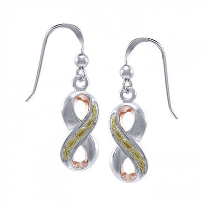Endless connection ~ Sterling Silver Three Tone Celtic Knotwork Infinity Dangle Earrings Jewelry with 14k Gold and Pink Accents OER1108