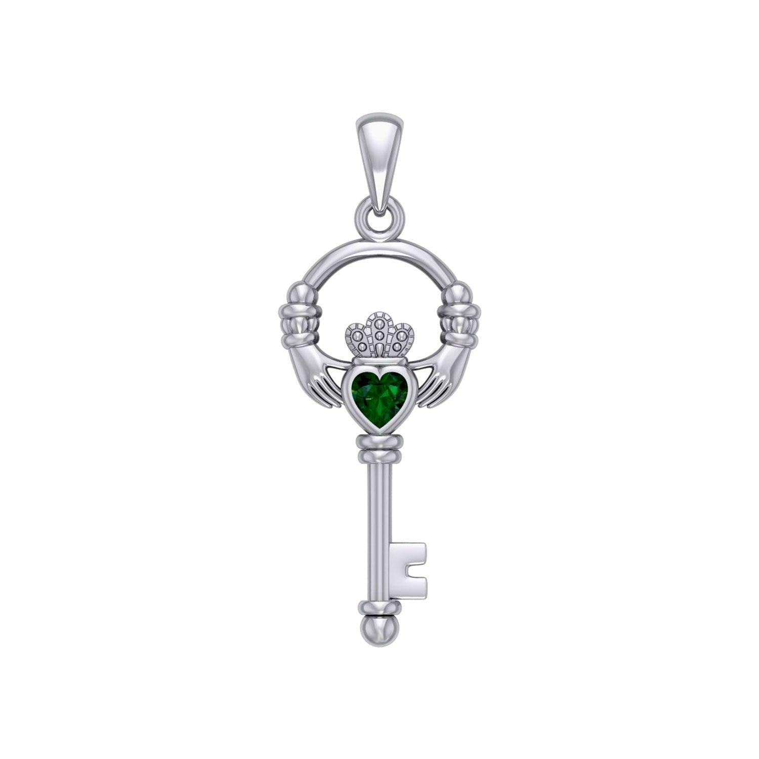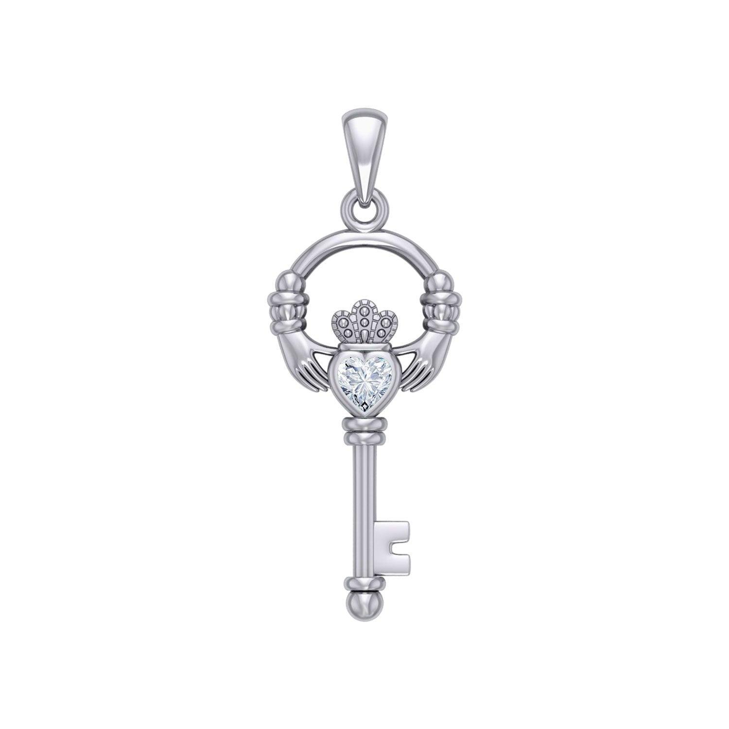 Irish Claddagh Mini Spiritual Key Silver Pendant TPD5878