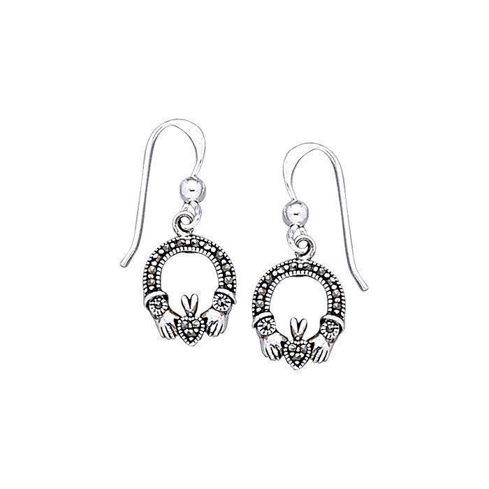 Meticulously crafted from fine sterling silver, the Irish Claddagh Silver Earrings with Marcasite showcases the beauty of Celtic tradition and the fine craftsmanship of Peter Stone Artisans.