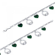 Irish Claddagh with Emerald Glass Hearts Silver Bracelet TBL038