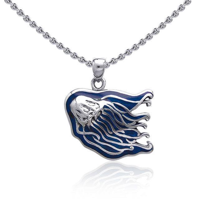 Jelly Fish Silver Pendant with Navy Enamel TP3122