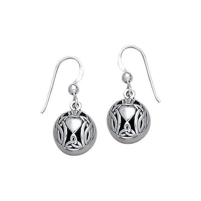 I give you my heart and crown with love ~ Celtic Knotwork Irish Claddagh Sterling Silver Hook Earrings TE2673