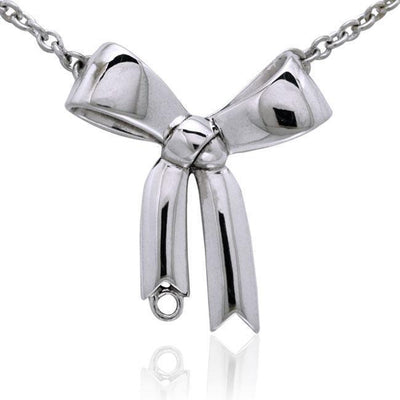 Ribbons have been traditionally tied around the finger as reminders, easily translating into a simple, elegant expression of love and longing in jewelry. This large, handcrafted sterling silver bow necklace allows you to add your favorite charm for a personal touch.