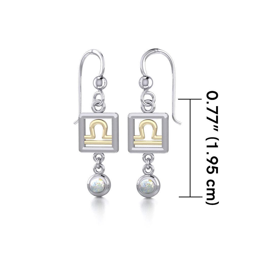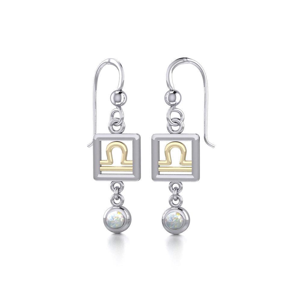 Libra Zodiac Sign Silver and 14K Gold Accent Earrings with Synthetic Opal MER1775