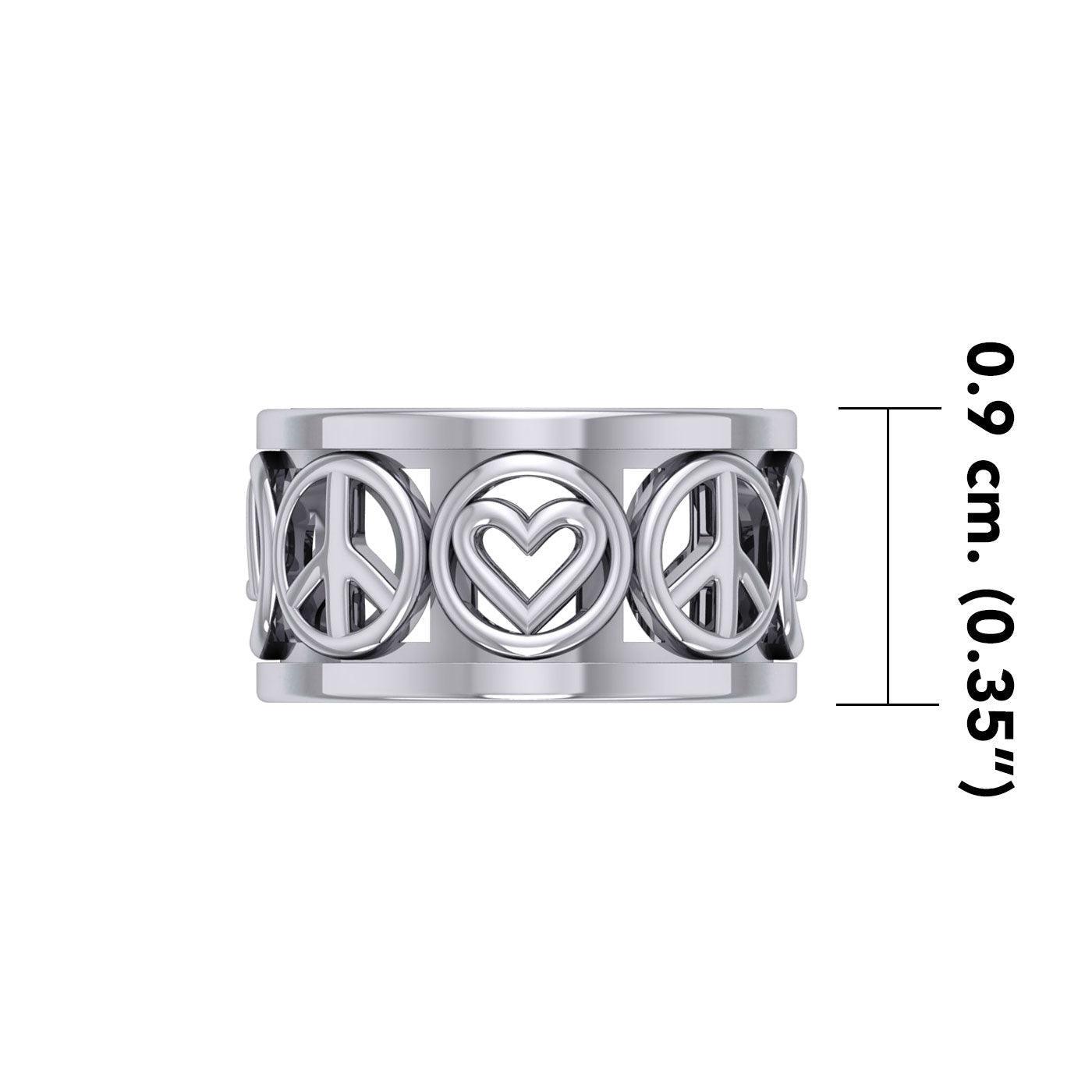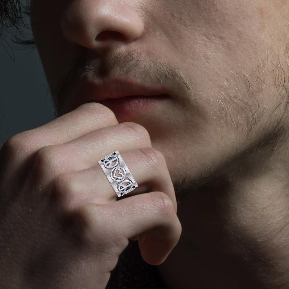 The Love Peace Recovery Silver Spinner Ring is a unique piece of jewelry designed to promote a sense of calm and well-being. The ring features a wide band made of high-quality sterling silver with a polished finish.