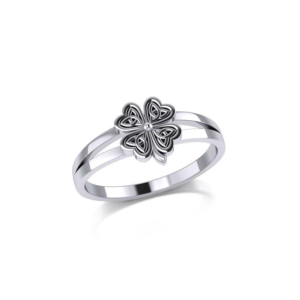 Lucky Celtic Four Leaf Clover Silver Ring TRI1936