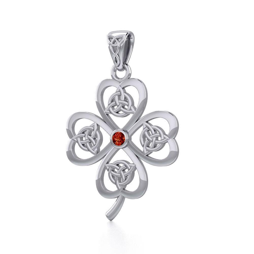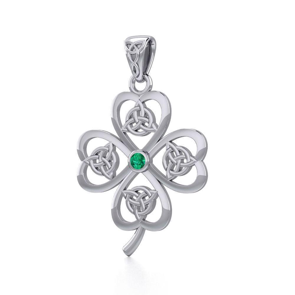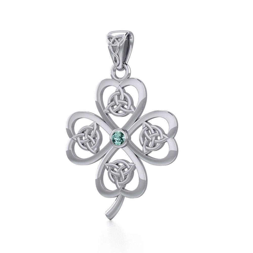 Lucky Four Leaf Clover with Triquetra Silver Pendant with Gemstone TPD5348