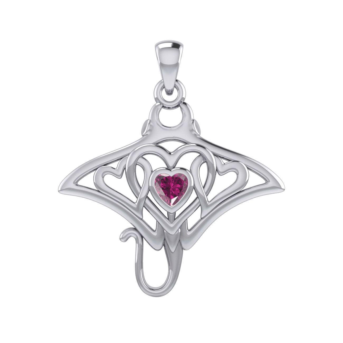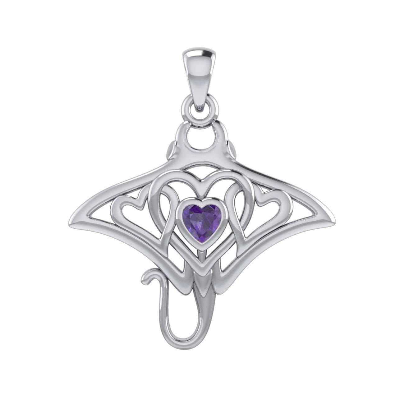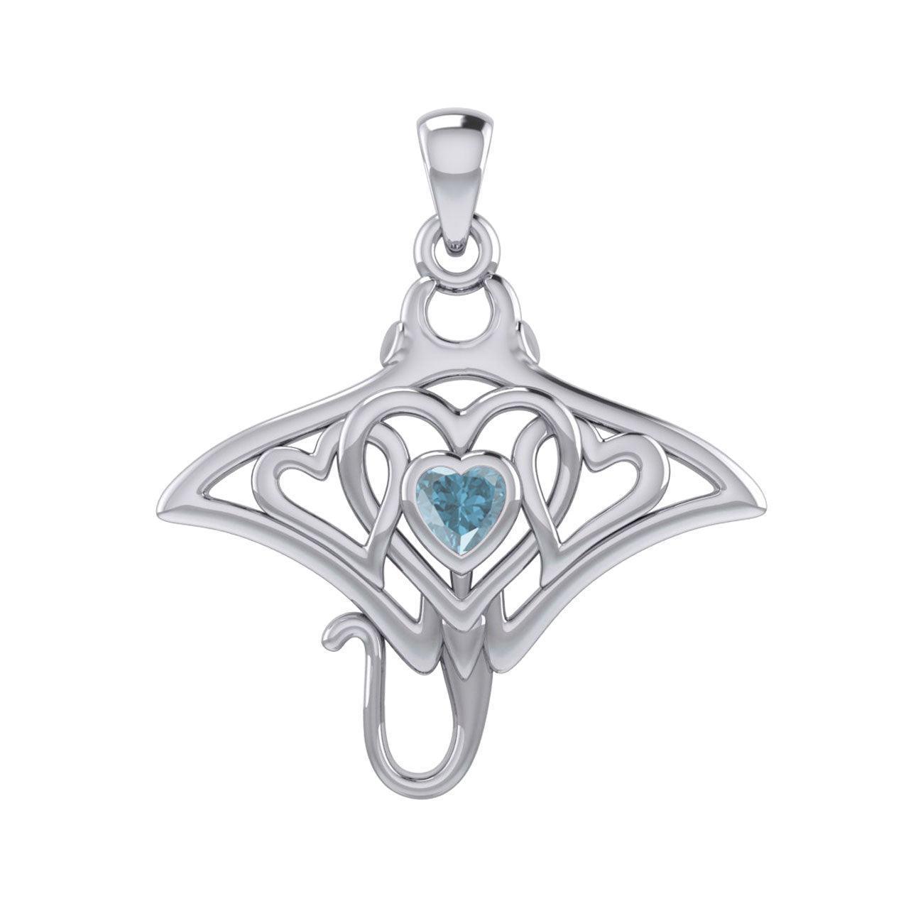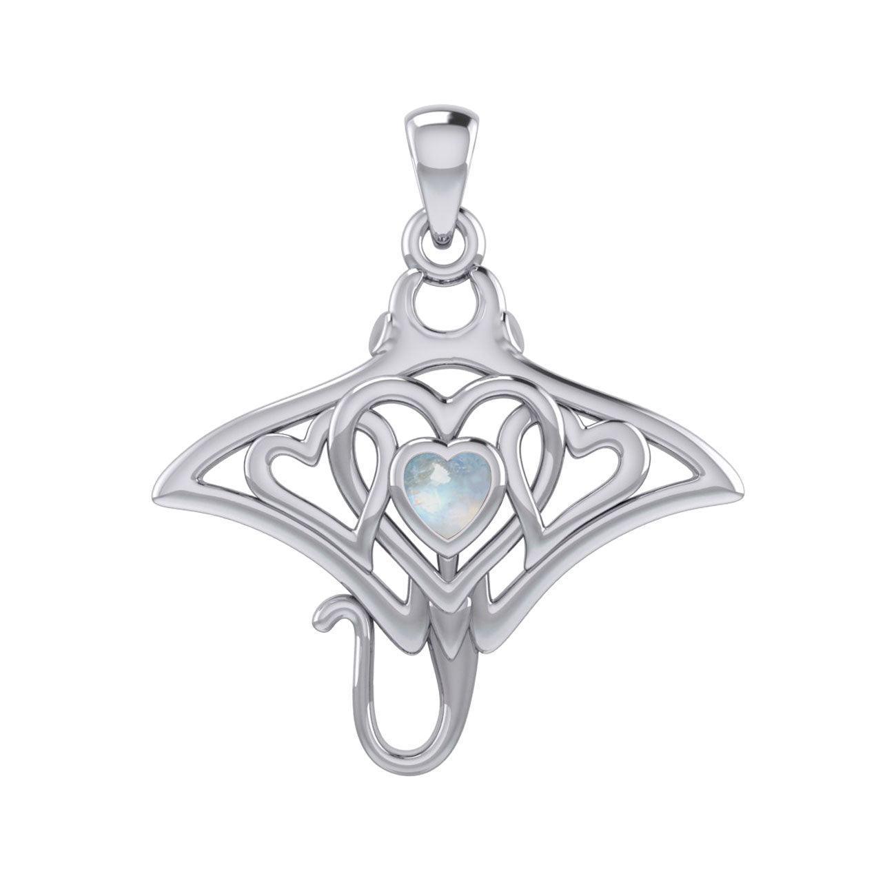 Manta ray with Triple Heart Silver Pendant With Gemstone in the Center TPD6072